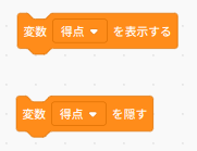 「変数〇〇を表示する」「変数〇〇を隠す」ブロックでも表示非表示を制御できます。